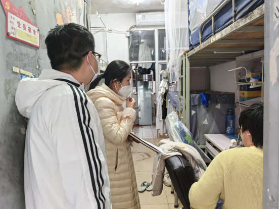 会后,全体辅导员深入学生社区进行安全隐患排查。重点对书院宿舍区的消防设施有无损坏缺少;楼栋逃生通道、安全出口是否畅通;安全出口指示标志、应急照明是否正常使用;宿舍有无存放电动车;楼栋外围有无电动车飞线充电等情况进行了排查。同时,辅导员还走访了留校学生宿舍,查看是否按照要求统一住宿,提醒学生假期留校用电安全等事项。