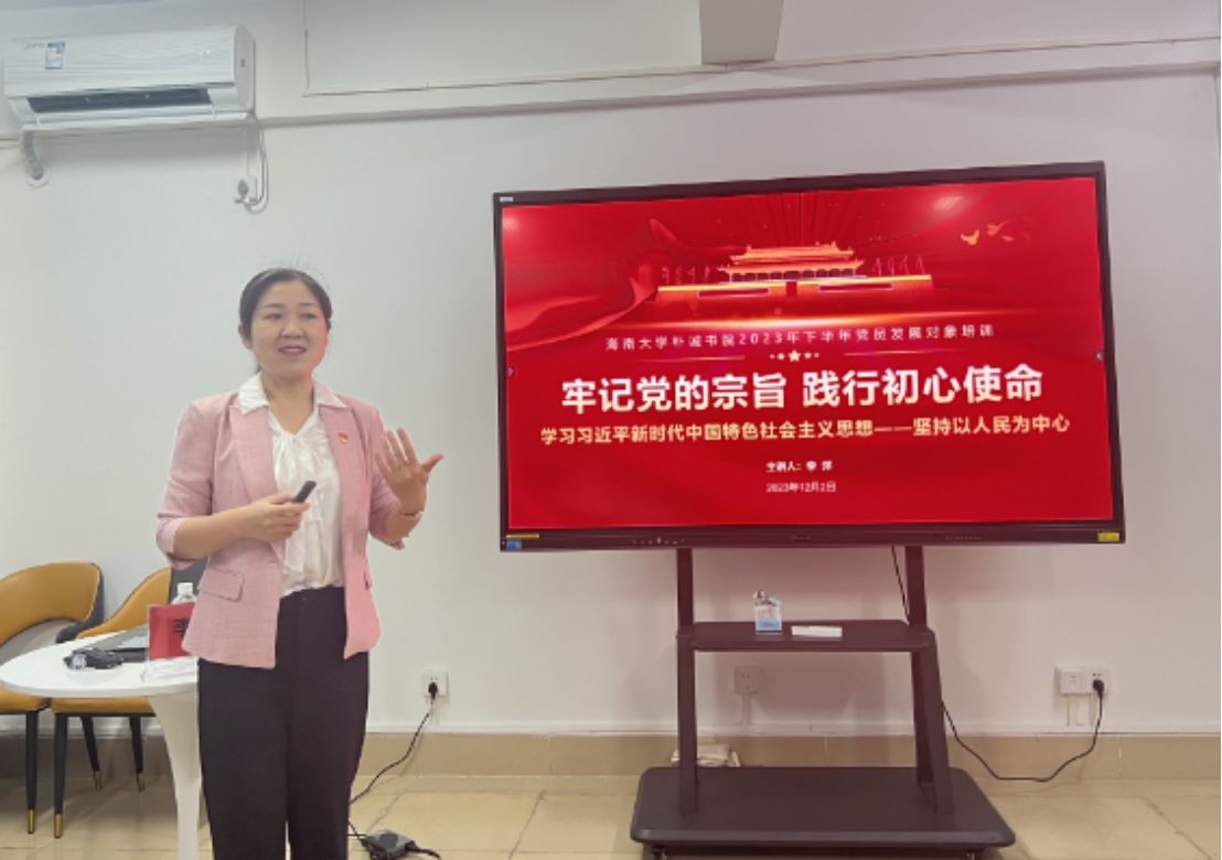 12月9日上午,原海南大学学报主编、特邀党建组织员陈传汉老师为学员讲授题为《我是这样做一个党员的》的党课。他为学员们认真梳理党的重要理论知识,推荐学习《共产党宣言》《中国共产党简史》《把一切献给党》等经典书籍,希望学员重视对党史的学习,认真学习党的理论知识,从经典书籍中汲取精神养分,提升理论素养。他生动地讲述着关于刘胡兰、雷锋、焦裕禄等英雄和榜样的故事,希望学员们主动向榜样学习,发扬党的优良传统,坚定理想信念,提升政治觉悟,增强责任感,将个人发展融入国家发展,努力发挥先锋模范作用。