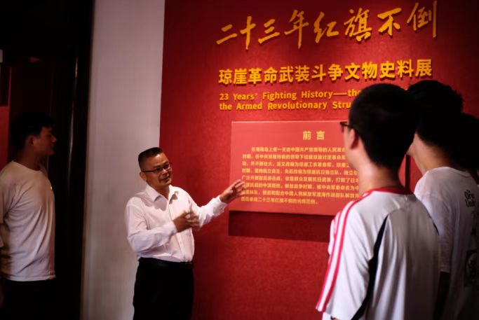 在参观的过程中,王茂钢副书记和2020级学生党员王帅同志生动地为大家介绍在古宅里发生的历史故事,带领大家一起重温峥嵘岁月,一起缅怀革命先烈。党员同志们驻足瞻仰,认真阅读历史资料,用心了解文物展品背后的故事,深刻感受到琼崖革命英雄们坚定的信仰和不屈不挠的斗争精神。