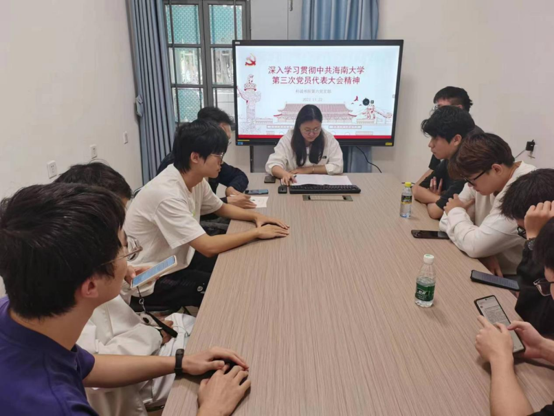 11月22日,英国威廉希尔公司第六党支部在13栋101会议室开展11月主题党日活动,深入学习贯彻中共海南大学第三次党员代表大会精神,活动由党支部书记王峥主持。
