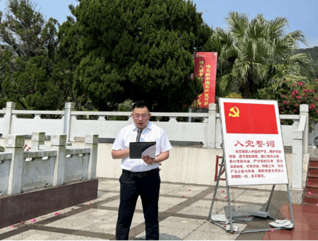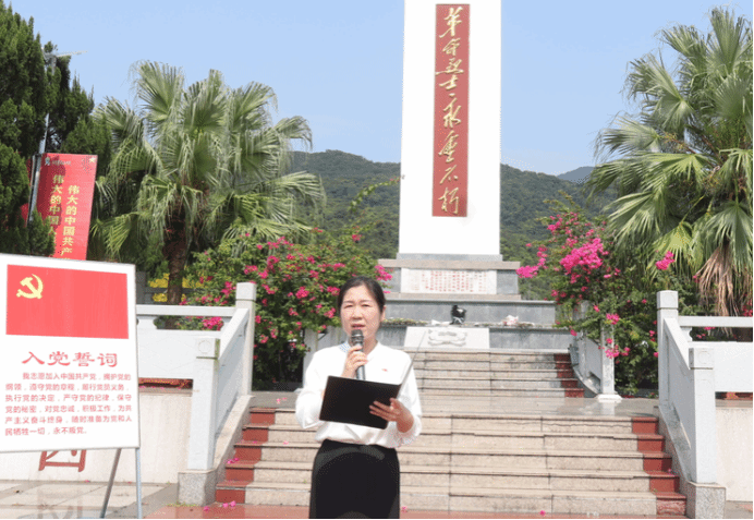 第八党支部李磊向大家讲述许运源、莫同荣等革命烈士的红色故事,带领大家回忆革命烈士在六连岭红军洞英勇斗争的艰苦岁月,号召全体同志传承琼崖精神,汲取奋进力量。