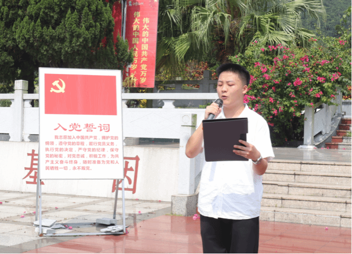 党委委员宋海婷带领全体新党员面向党旗庄严宣誓,在场的老党员也重温了入党誓词。