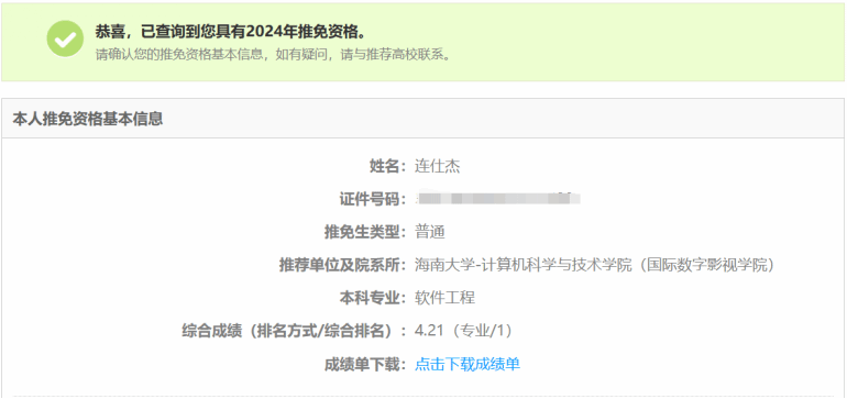 推免学校专业:华中科技大学计算机科学与技术专业(直博)
