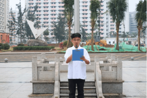 学生代表、13-15班刘思晨作“国旗下的演讲”。在第十个全民国家安全教育日即将来临之际,他以“以青春根系,牢筑自贸港安全红树林”为主题,向即将走上科研道路的同学们说明了保护国家科技安全的重要性,提醒大家重视国家核心科技成果保护,警惕境外势力渗透。