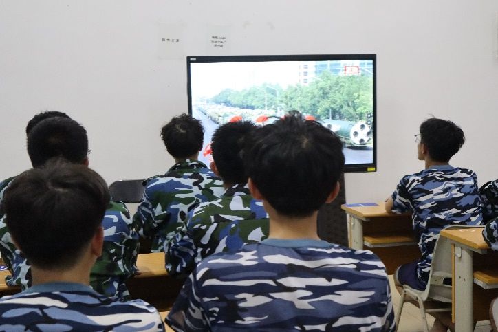 书院集中组织观看阅兵仪式,大家都紧紧盯着屏幕,眼神里充满了期待和自豪。