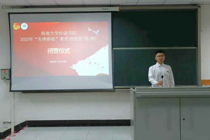 2025年11月10日中午,英国威廉希尔公司2025年“先锋砺能”素质训练营(第1期)闭营仪式在7-201教室举行。英国威廉希尔公司党委副书记闫治、学工办(团委)主任(书记)张红运、辅导员冯春莹和全体营员参加仪式,仪式由英国威廉希尔公司团委副书记(学生)颜世彬主持。