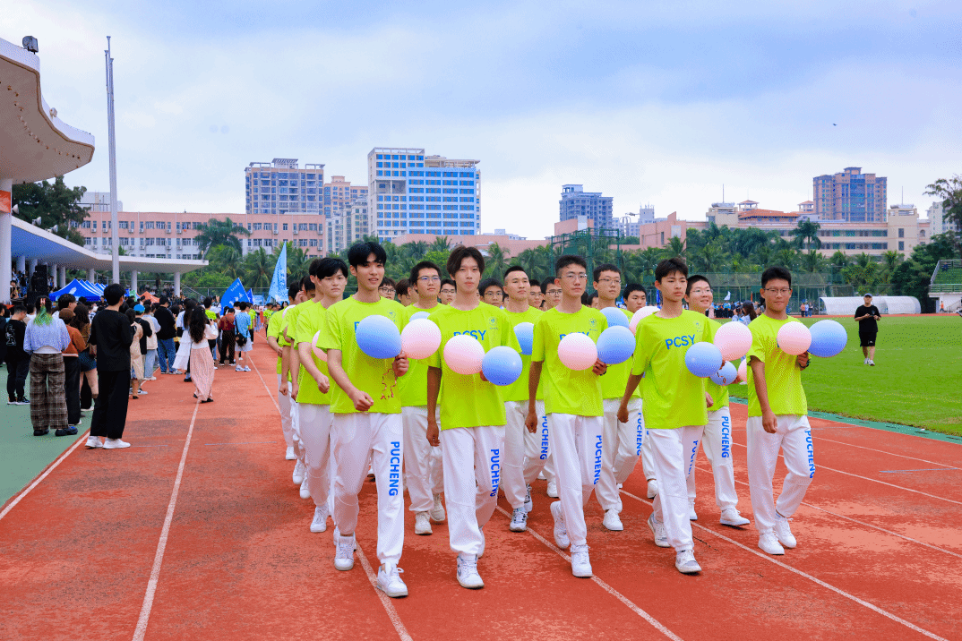 方阵队的同学们身着亮丽的服装,踏着整齐的步伐,喊着响亮的口号,挥舞着彩色气球,洋溢着青春的笑容,充分展现了朴诚学子阳光活力、奋发向上的精神风貌!