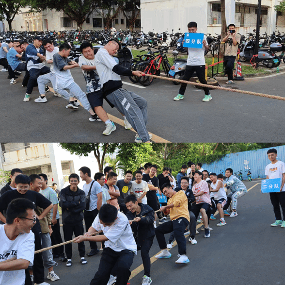 选手们紧握绳索,心往一处想,劲往一处使,个个斗志昂扬,精神抖擞。四支队伍经过第二轮的激烈角逐,最终一分队取得本次新生拔河比赛第一名。