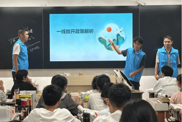 宣讲团成员也来到安徽省明光市明光中学高三(24)班,以主题班会的形式向同学们进行海南自贸港建设政策解析。随后,还组织了有奖竞猜小游戏,通过趣味互动的方式为同学们答疑解惑,并现场发放海南特色小零食供大家品尝。聆听完宣讲的班主任和同学们都纷纷表示,本次宣讲不仅加深了大家对海南的了解,更深化了同学们对海南自贸港建设的认知,帮助大家开阔眼界的同时,相信也让高三的同学们在明年志愿填报时有了更多的选择。
