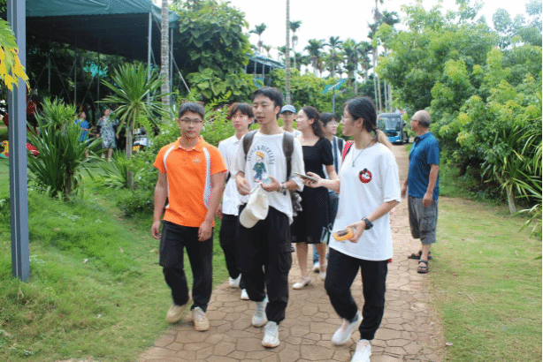 在琼海市博鳌镇莫村驻村第一书记黄立封的带领下,团队成员走访了十几户莫村村民,同时参观了华侨古村——留客村,并重点调研了“海南侨乡第一宅”——蔡家大院。团队在走访、参观、调研的过程中,还积极向村民进行了“安全使用农药”“碳排放知识科普”“生活垃圾分类”等科学知识普及,村民们热情回应了团队成员的科普讲解,并进行相关问题探讨。