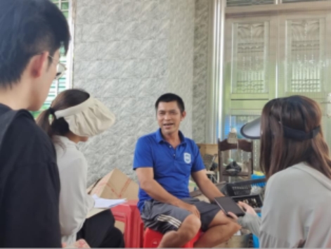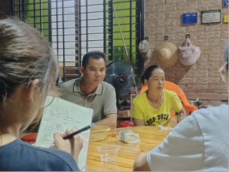 下午三点,团队在符书记的带领下去到了几户脱贫农户及致富带头人的家中。团队分成两个小队分别出发进行采访。调研团分别采访了原是贫困户,后经过扶贫政策顺利脱贫的符兴建和符积山两家。他们均表明,种植橡胶收割后拿去收胶站出售是主要的收入途径和日常生活费用来源,同时每年也交替种植水稻和辣椒。扶贫政策在这个过程中给予了他们包括化肥、橡胶保险等多方面的补贴和帮助,政府的帮扶是脱贫成功的重要因素。