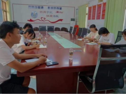 随后,团队与村委会开展了有关光吉村脱贫致富成果与乡村振兴战略的座谈会,光吉村文书兼团支部书记符森参加了本次座谈会。在座谈会中,分队队长就光吉村经济、政治、交通、政治及未来规划展开了提问。符书记提到,光吉村近年来经济总体呈上升趋势,他介绍到村里的主要产业为橡胶产业,还特别提及“光吉香米”的研发和推广为光吉村的经济注入了新的活力。在介绍优秀脱贫事迹、人物时,符书记尤其强调了符学茂种植柠檬的成功事迹以及辐射作用。对此,团队提出希望能够采访这位致富带头人,以更近距离感受和学习脱贫致富经验、精神。最后,符书记也说明了针对乡村振兴未来的规划,表示村委会一直在关注着村里的情况,不断改善小的问题,以促进大家生活变得更好。
