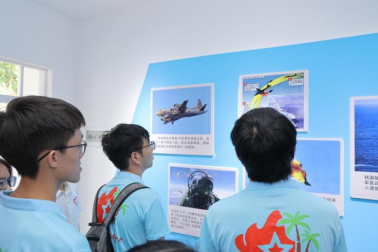 实践团在中国工农红军海南陵水海空卫士王伟红军小学工作人员的带领下瞻仰了王伟烈士雕像,同时参观了学校国防馆。在学校国防馆,团队成员不仅重温了许多革命志士英勇战斗的事迹,还详细了解到王伟烈士在中国海南岛东南70海里的中国专属经济区上空为捍卫国家主权与美军飞机殊死搏斗的英雄事迹。王伟烈士用生命告诉我们:捍卫主权,从来都没有“退一步海阔天空”。