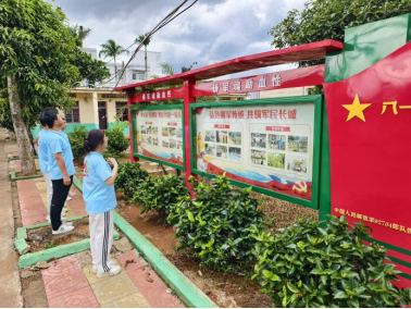 中国工农红军海南陵水文罗苏维埃红军小学总校校长李敏向实践团详细介绍了近几年学校的建设规划和办学特色。李敏说,“我们编写了自己的校本教材和课本剧,还把中国共产党人的精神谱系融入日常教学,让孩子们学习知识的同时感悟革命精神、锤炼意志品质。”随后,实践团成员参观了该校的展览馆,欣赏孩子们围绕主题校园文化创作的“书签”“画布”“泡沫画”等手工艺品。