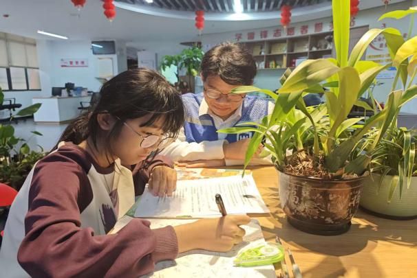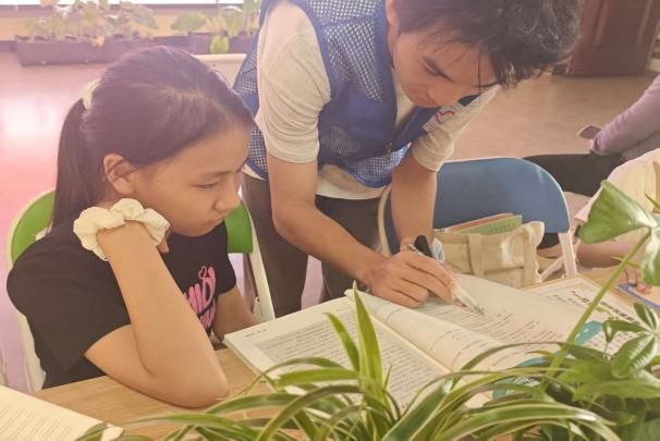 在此基础上,志愿者面向社区儿童开展一对一学业辅导,根据每位孩子的学习情况进行耐心讲解,并分享错题整理、重点标注等实用学习方法。