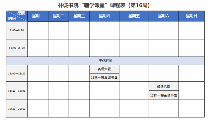 辅学课堂|第16周课程预告(2023-2024学年春季学期)