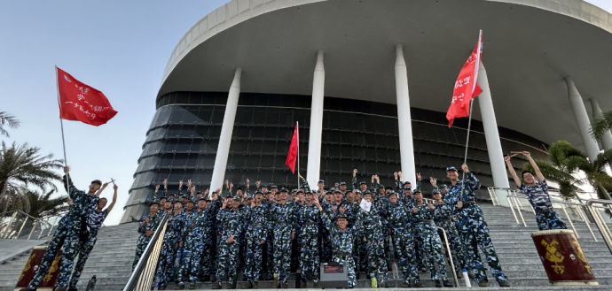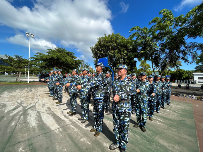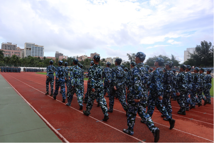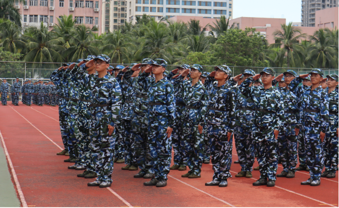 站军姿是军训的第一课。9月的海南,依旧骄阳似火,但同学们无惧骄阳,在训练场上挥汗如雨,站出了定力,为上好军训这门课打下坚实的基础。