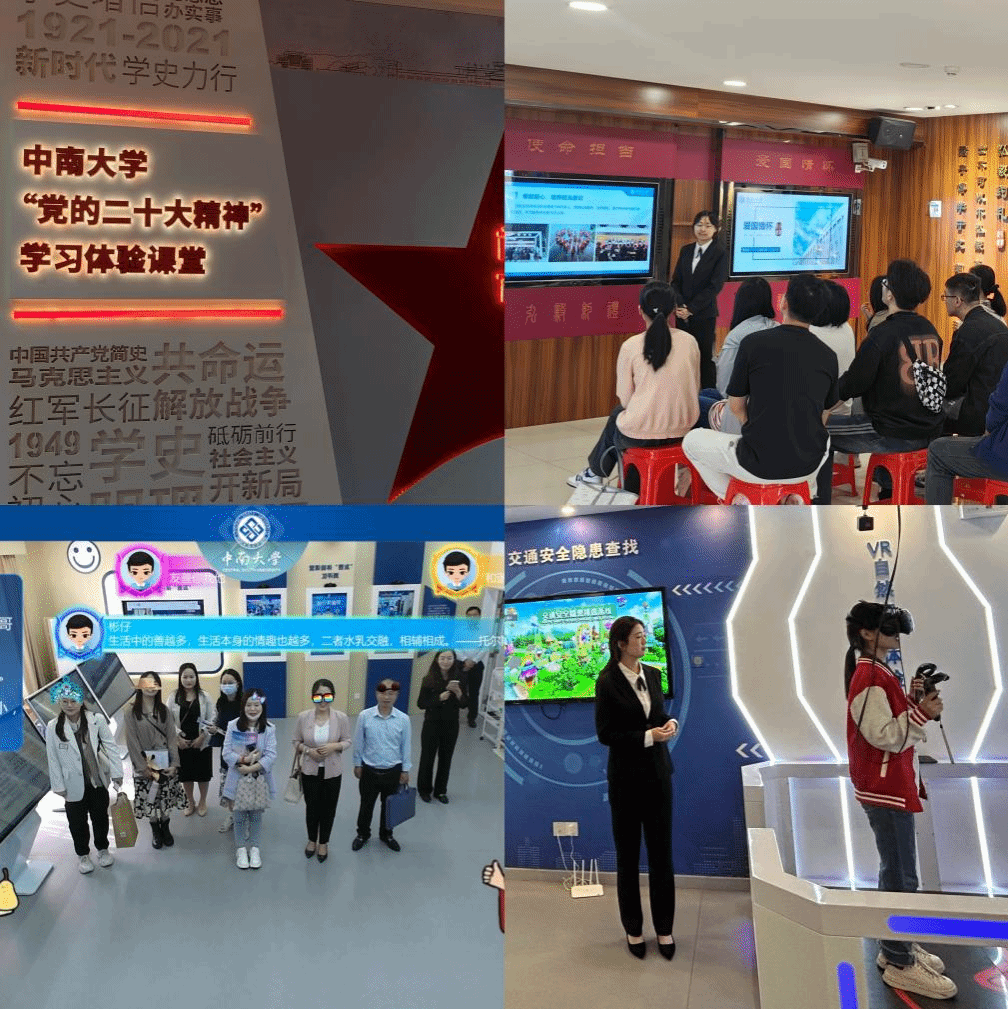 10月24日上午,考察团队首先来到中南大学新校区。在学生工作部副部长宋晓东、就业指导中心主任徐赞的陪同与支持下,大家先后参观了中南大学“价值引领课堂”“党史学习教育课堂”“职业选择能力训练实验中心”“安全教育沉浸式体验课堂”“知新馆”等育人阵地。中南大学先进的育人理念、创新的工作模式、完善的场地设施,以及切实从学生需求出发,为学生提供个性化指导和服务的务实作风,给大家留下了深刻印象。
