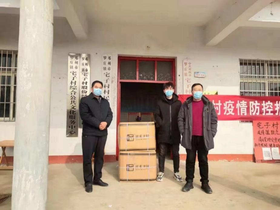 捐赠防疫物资,助力疫情防控(右二为张一卓)
