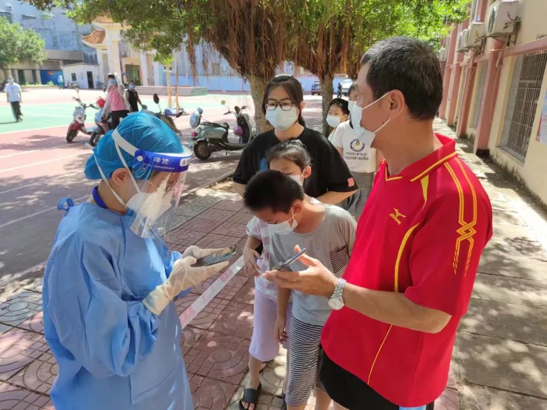 陈姝妤在海南省海口市美兰区白龙街道大规模核酸采样点服务