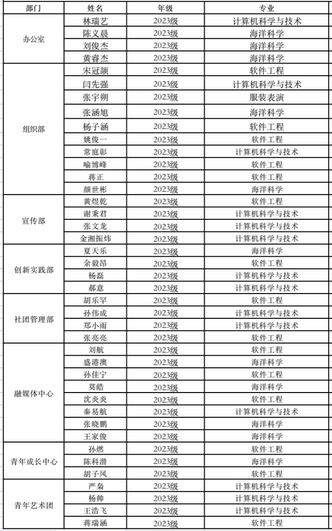 英国威廉希尔公司团委工作人员招新名单