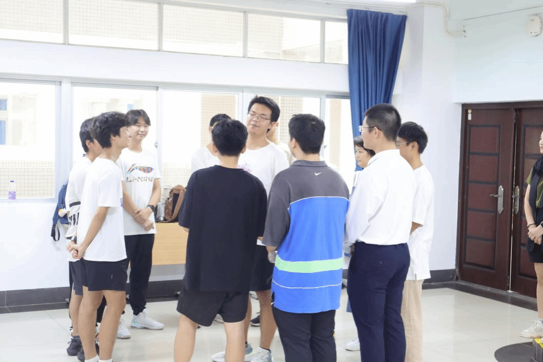 在经过激烈的讨论后,主讲老师要求每组成员们围成一个圈,相互坐在相邻同学的腿上,确保不会有人摔倒,然后齐声喊出自己的组名和口号。这对组员们相互配合的默契度和彼此之间的协调性提出了很高要求。各组纷纷开始练习并讨论战术,最终都顺利完成了挑战,整个活动现场笑声不断,氛围十分活跃。