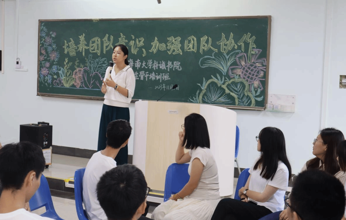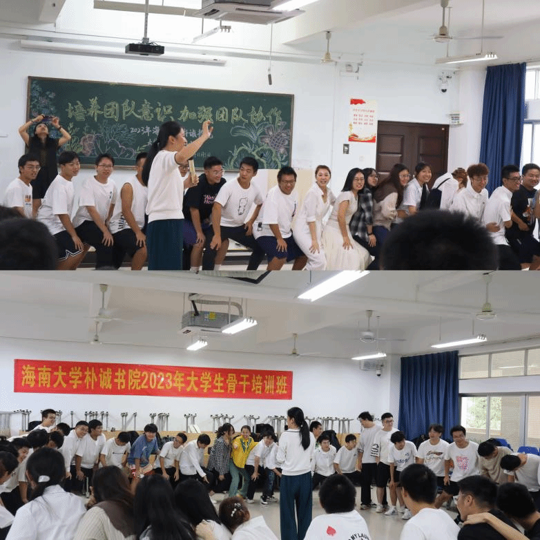 11月5日下午,海南大学英国威廉希尔公司2023年大学生骨干培训班在4-312教室开展“培养团队意识、加强团结协作”团体辅导。书院校外导师李娟和她的团队带领培训班学员们有序进行每一项环节。