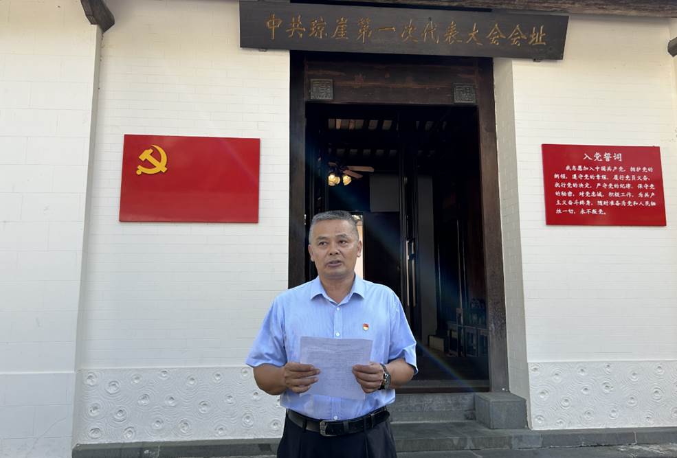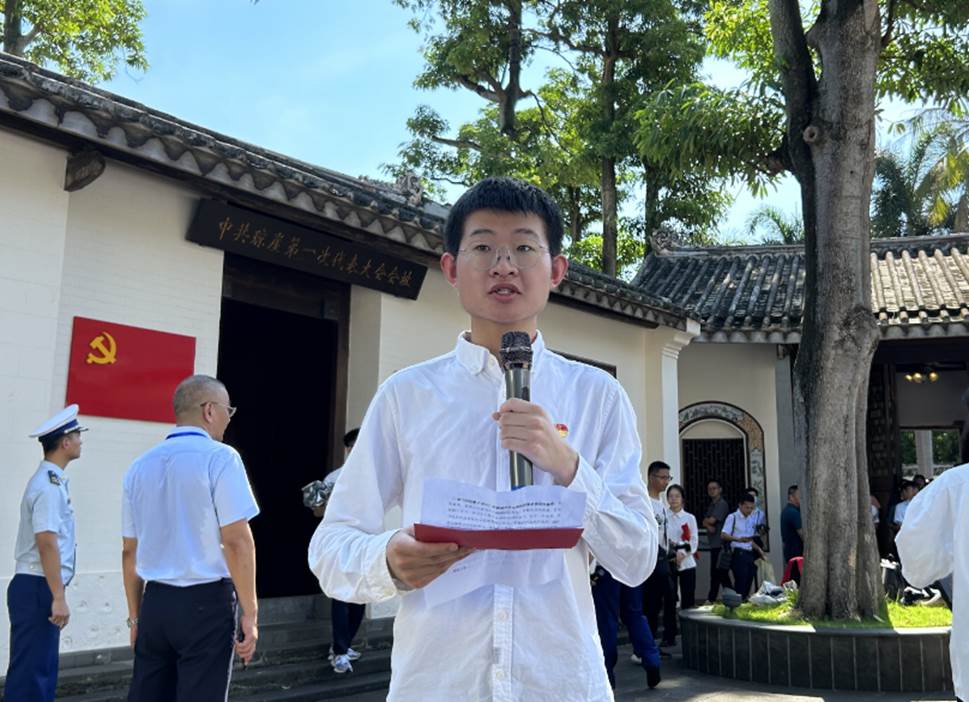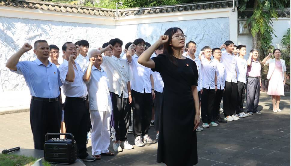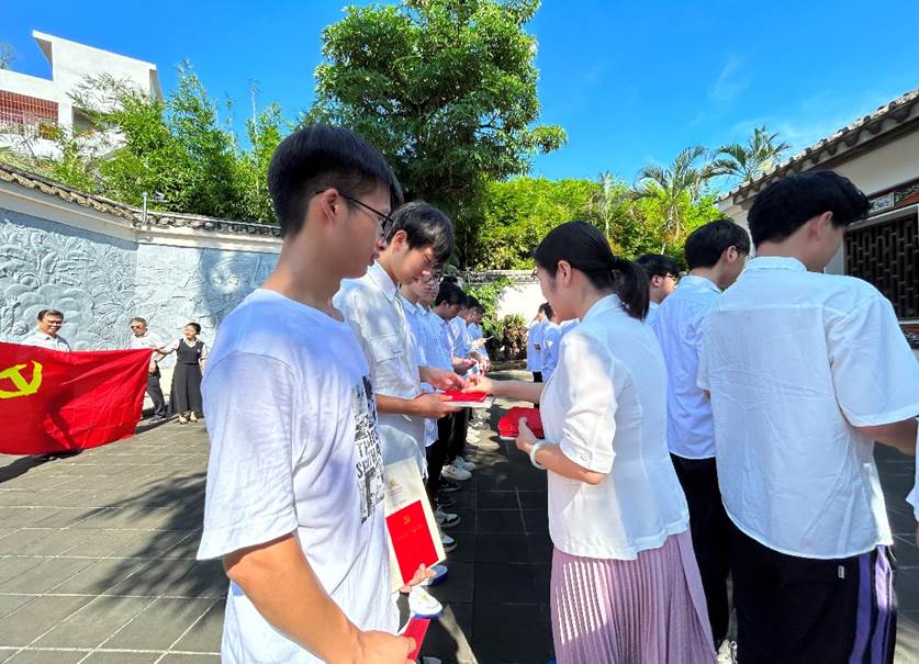 为庆祝中国共产党成立102周年,深入开展学习贯彻习近平新时代中国特色社会主义思想主题教育,赓续红色血脉,凝聚奋进力量,7月1日上午,英国威廉希尔公司党委组织党员前往中共琼崖第一次代表大会旧址开展“不忘初心强党性砥砺奋进建新功”新党员入党宣誓仪式暨党员集体政治生日活动。海南大学关心下一代工作委员会主任陈封椿、常务副主任林少敏、副主任陈传汉,海南大学离退休人员服务中心党委书记韩力光应邀出席。英国威廉希尔公司党委书记李洋、副书记王茂钢、党支部书记、2023年上半年新发展和转正党员、入党积极分子代表等30余人参加活动。